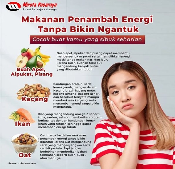 Kombinasikan makanan tersebut dengan pola hidup sehat seperti olahraga teratur dan tidur cukup agar energi tetap stabil.